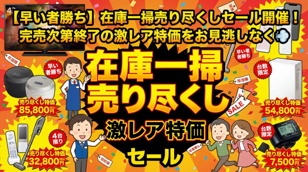 【早い者勝ち】在庫一掃売り尽くしセール開催!完売次第終了の激レア特価をお見逃しなく💨 -