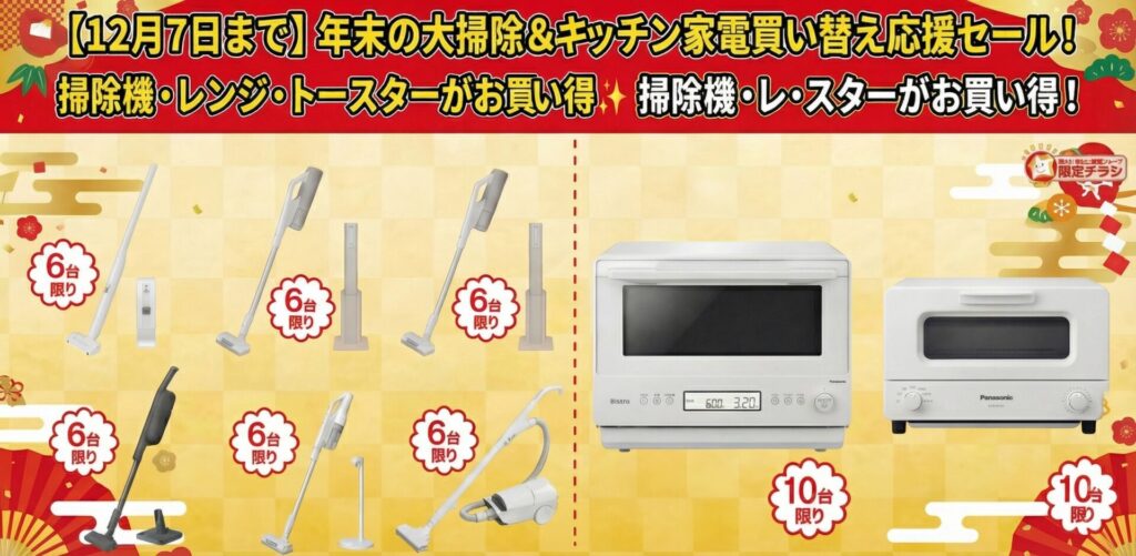 【12月7日まで】年末の大掃除&キッチン家電買い替え応援セール!掃除機・レンジ・トースターがお買い得✨ -