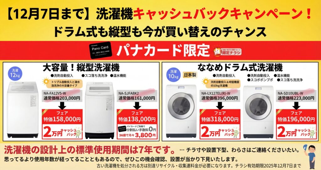 【12月7日まで】洗濯機キャッシュバックキャンペーン!ドラム式も縦型も今が買い替えのチャンス -