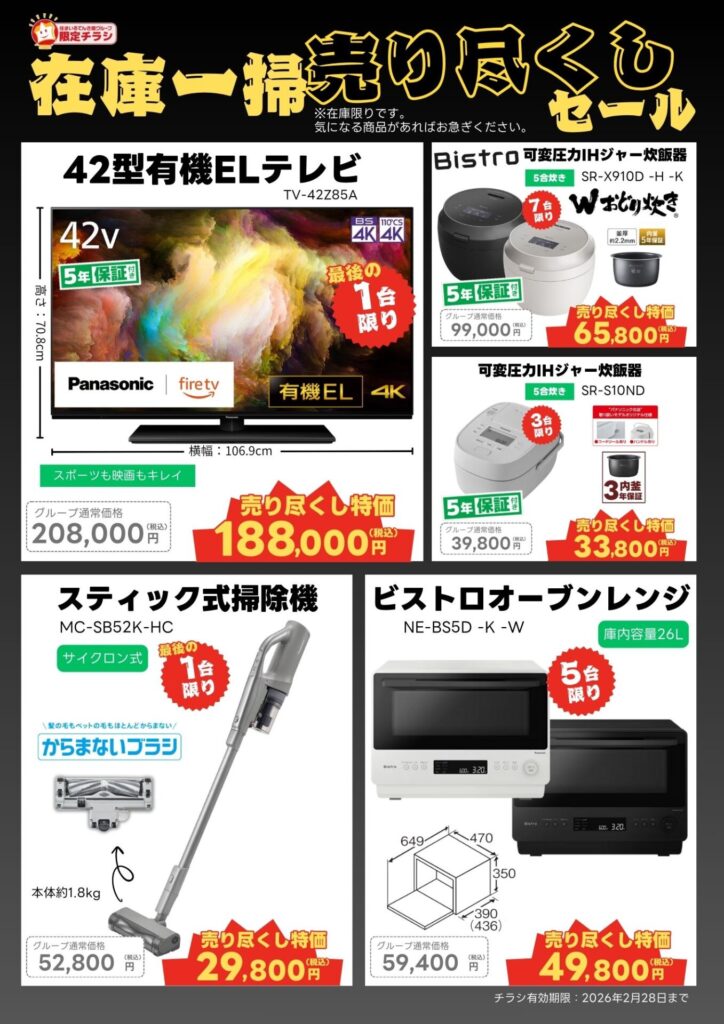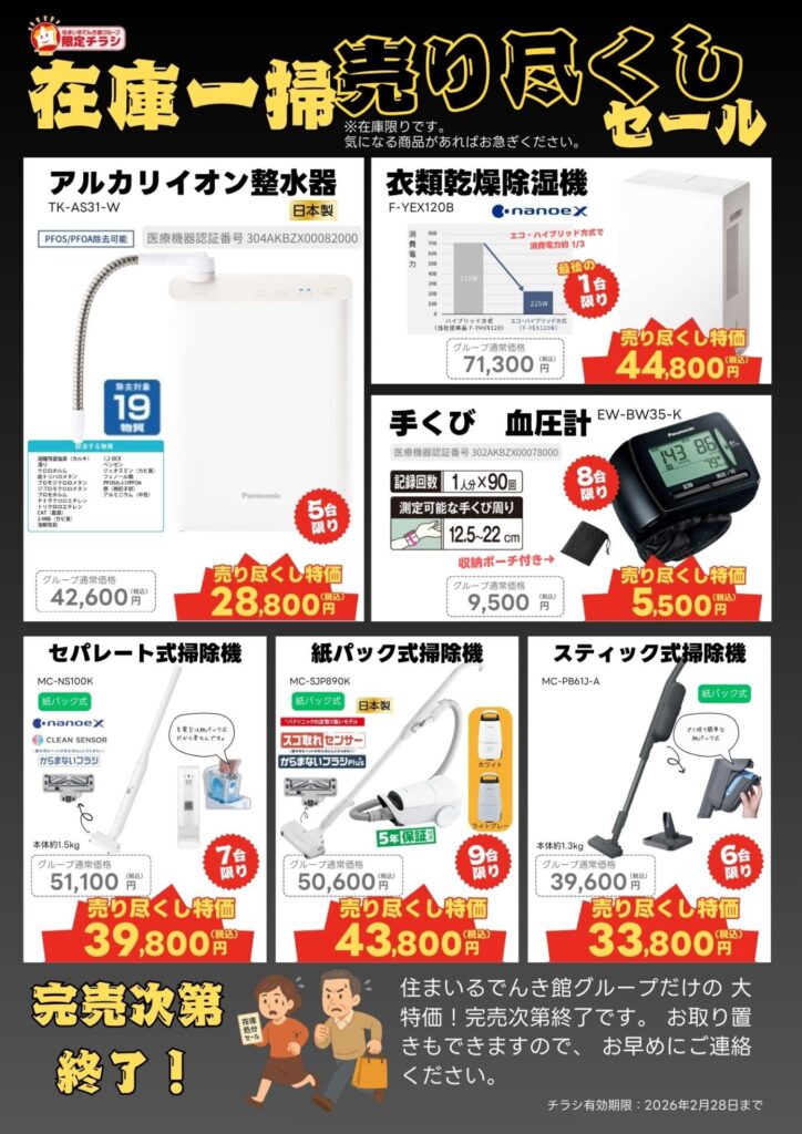 住まいるでんき館グループだけの大特価!数に限りがありますので、気になる商品があればすぐにご連絡くださいね。完売次第終了ですのでお早めに!😊