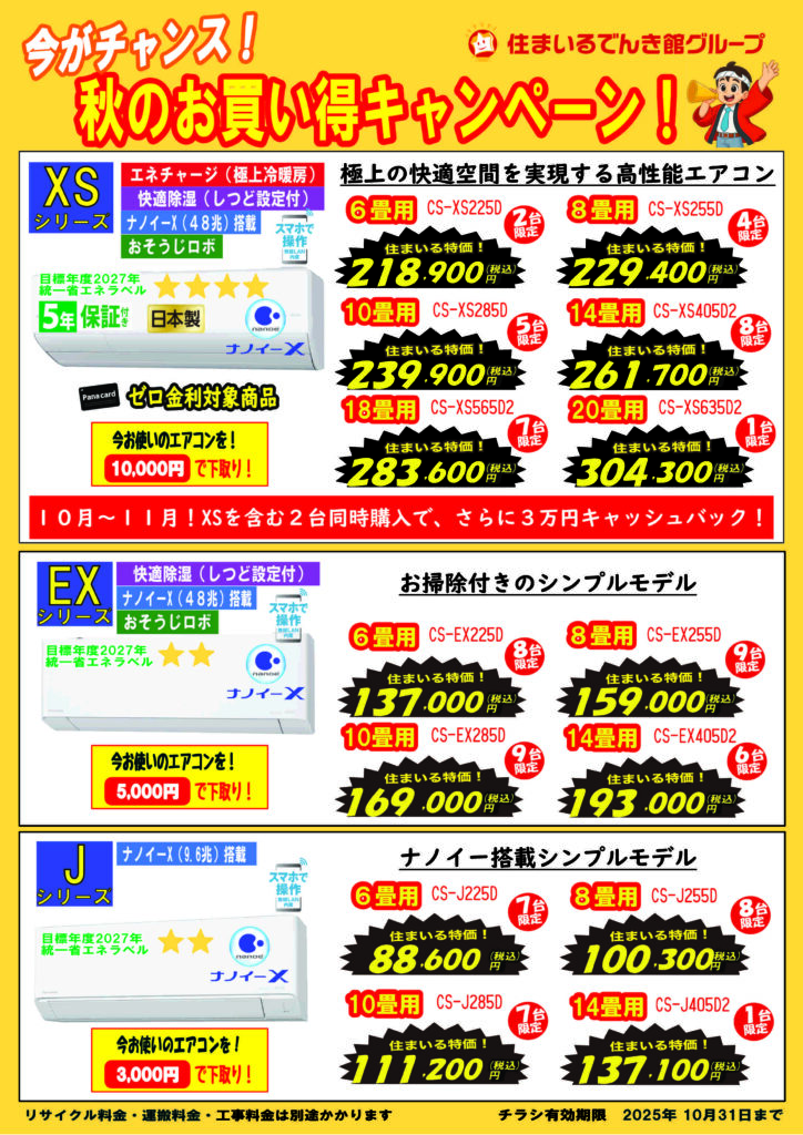【見逃し厳禁!👀】秋のエアコンお買い得キャンペーン!パナソニック最新モデルもお得に賢くゲット!